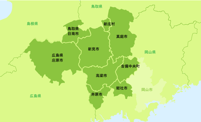 対象エリア:岡山県新見市、真庭市、新庄村、吉備中央町、高梁市、総社市、井原市、鳥取県日南市、広島県庄原市
